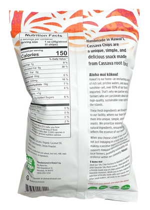 Experience the unique flavor of our Garlic Sea Salt Cassava Chips, hand made in Hawaii with Hawaiian grown cassava and cooked in coconut oil. Satisfy your taste buds with these crispy, savory chips that are both delicious and made with care. No seed oils!