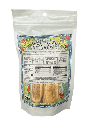 These dried apple banana's are certified USDA organic and Demeter certified biodynamic. Apple banana's are known for their naturally sweet taste. These chewy treats make a tasty snack for hiking or lunchboxes, and are great chopped up and added to granola, yogurt, or your favorite muffin recipe.