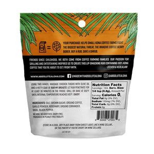 Taking them over 300 hours of grilling and smoking to find the perfect balance of rosemary, basil, and garlic. This three way spice party offers a sweet, sharp, and woodsy flavor that sings on the palate like The Kona Coffee harmonizes with the earthy notes of the herbs and adds a slight crunch. It's a symphony of succulent satisfaction! Kona Coffee also replicate tannins in wine, which allow greater flavor.