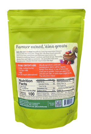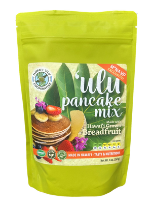 For centuries, breadfruit (‘ulu) has been a sustainable and nourishing staple in Hawai‘i. This pancake mix, made with ‘ulu flour, offers a simple and delicious way to support local farmers while promoting Hawai‘i's food security and resilience. Naturally gluten-free and rich in nutrients, ‘ulu pancakes are sure to become a favorite in your ‘ohana’s breakfast routine.