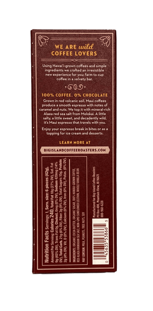 ✓ 3 espresso shots per bar (130mg natural caffeine) from 100% Big Island Coffee
