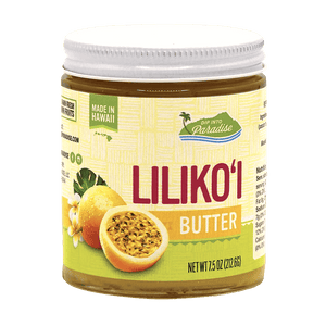 Hawaiian made liliko'i butter (passion fruit butter), guava butter, coconut butter, and mango butter. Made using fresh fruit from up country farms in Kula Maui. All natural and no preservatives. Hand Made in Hawaii!