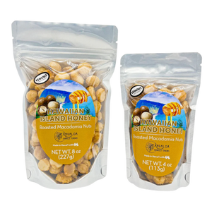 Choose between a 4oz or 8oz bag, Made with 100% Hawaiian Grown Macadamia Nuts