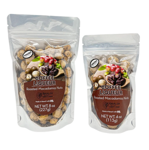 Hawaii macadamia nuts infused with Kahlua liqueur and Ahualoa Farms own 100% Hamakua dark roast coffee. These macadamia nuts have a subtle sweet coffee taste. Crumble them on a dessert or eat them whole as "wake me up" snack!